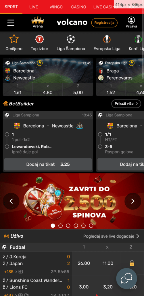 Jedna od glavnih prednosti VolcanoBet-a je stabilan rad mobilne platforme i jednostavno klađenje tokom dana, bilo da pratiš fudbal, košarku, tenis ili druge popularne sportove. Interfejs je dovoljno pregledan za svakodnevno korišćenje, a ponuda je organizovana tako da se najvažniji događaji i tržišta lako pronalaze i na manjem ekranu.