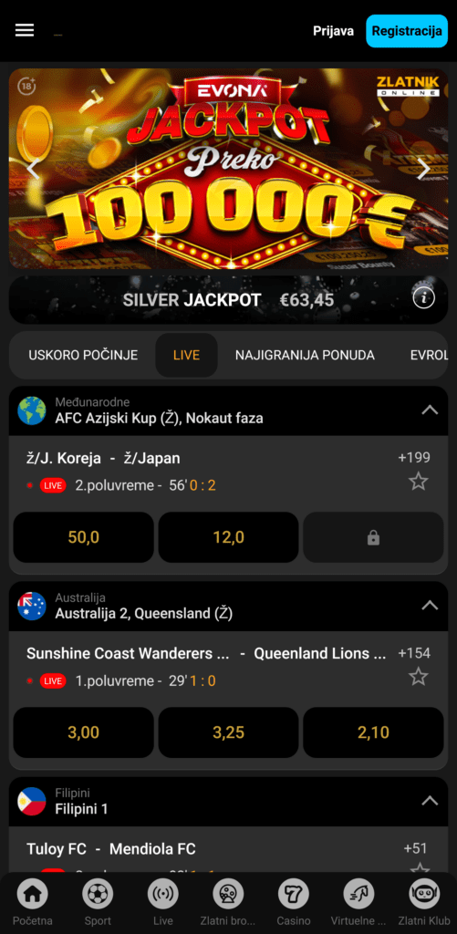 - Kvalitetno live klađenje na telefonu